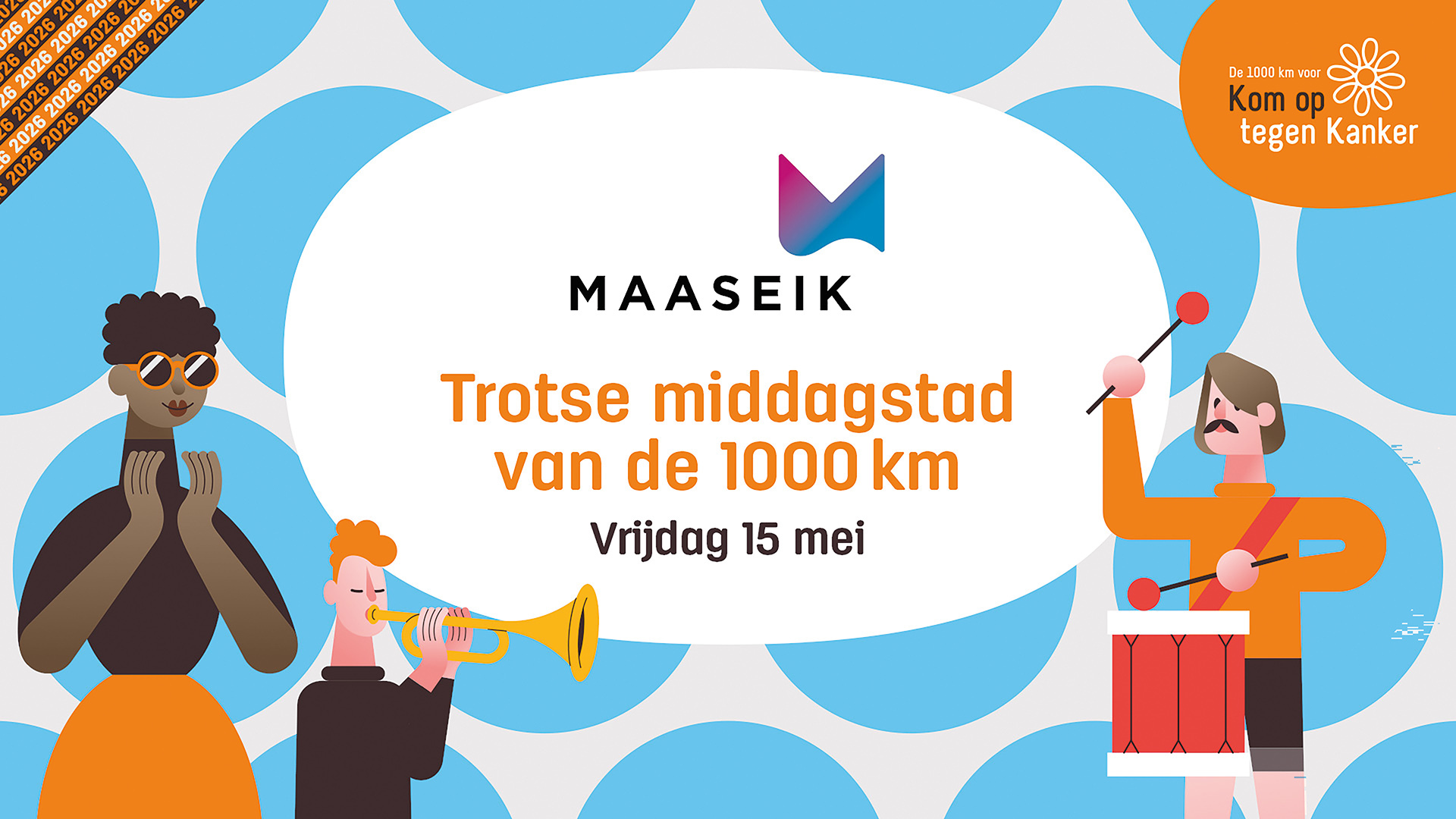 De 1000 km van Kom op tegen Kanker houdt halt in Maaseik! Op vrijdag 15 mei zijn de fietsers te gast in onze stad voor een onvergetelijke middagstop. Samen maken we er één groot fietsfeest van ten voordele van kankeronderzoek. Help jij mee om de pelotons een warm welkom te geven? Ben je creatief, zit je in een toffe vereniging, doe je graag vrijwilligerswerk of wil je dit gewoon echt niet missen? Kom er alles over te weten op het infomoment ‘Nog 100 dagen tot de 1000 km’ op maandag 2 februari vanaf 19 uur in Cultuurcentrum Achterolmen.